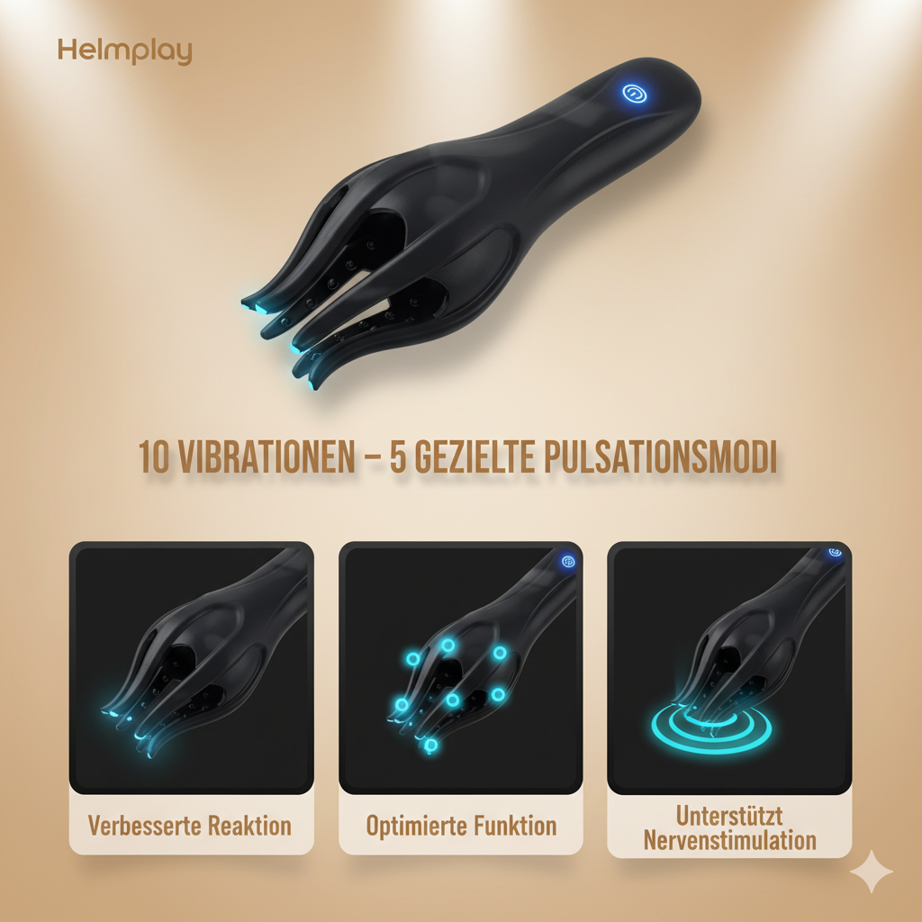 Helmplay Steady™ bietet 10 intelligente Vibrationsmodi, die gezielte Stimulation im Beckenbereich ermöglichen. Diese Therapie unterstützt die Durchblutung, verbessert die Nervenreaktion und fördert natürliche Funktionen – für härtere Erektionen, bessere Kontrolle und mehr Ausdauer.